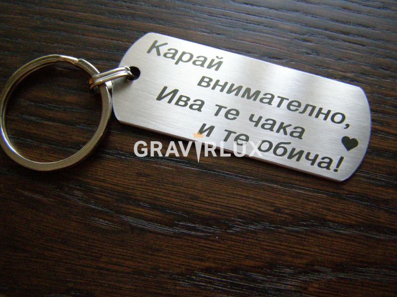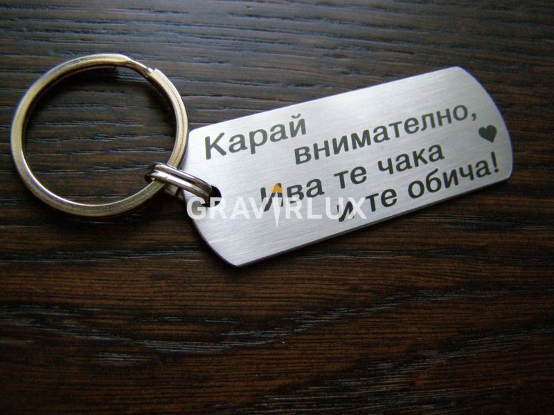 Ключодържател с текст " Карай внимателно, Ива те чака и обича! " от неръждаема стомана